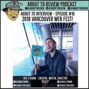 This episode of the “About To Interview”/ “About To Review” podcast was recorded on location at the 2018 Vancouver Web Fest (vancouverwebfest.com) where I interviewed Ben Strang, Brynn Peebles, Brianna Wiens, Christina De Leon, Suzette Laqua, and Paula Hoffman!